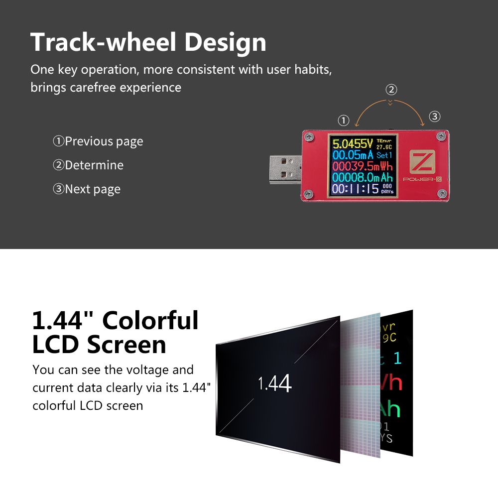You can see the voltage and current data clearly via its 1.44 quot; colorful LCD screen.
