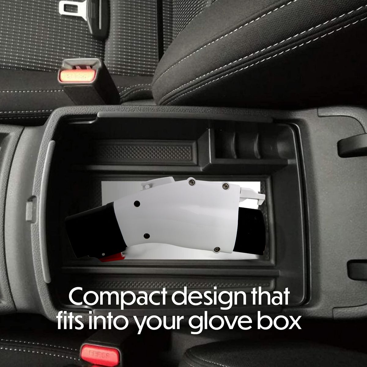 The charging adapter is compact and lightweight, making it ideal for charging on the go. Keep it conveniently in your car to charge your electric vehicle quickly and easily.