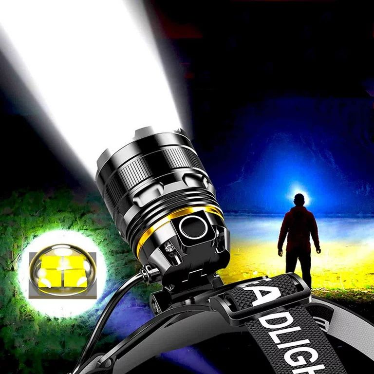 [Ultra-bright durability] AIKERTEC's new type front light, using high-quality LED chips, can reach 90,000 lumens, irradiated light of 1500 meters, long-term use time 6-12 hours, ultra-light headlights, outdoor sports and adventure must be necessary Prepare flashlight