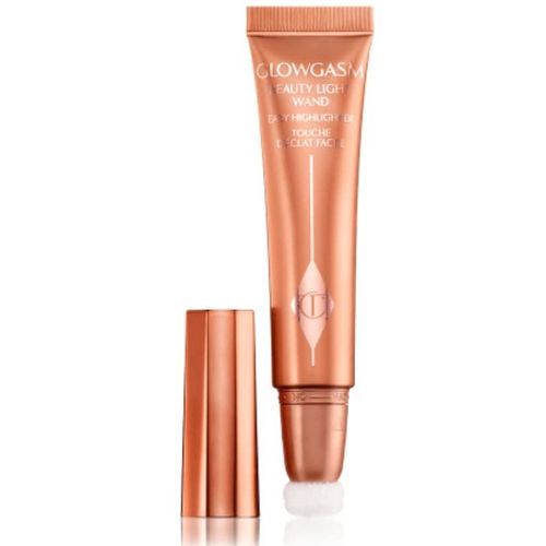 Charlotte Tilbury Glowgasm Beauty Light Wand In Pinkgasm, Highlight/Blush. 12ML. Apply on preferred area and blend with brush or beauty blender! For a gorgeous, glowing highlight-blush, Glowgasm Beauty Light Wand in Pinkgasm adds a kiss of rosy pink to your cheeks and is inspired by the beautifying effects of fun! It plays with the light beautifully, for a soft-focused glow that bathes you in beauty light and joy! If you loved Charlotte's Hollywood Beauty Light Wand, you will LOVE the Glowgasm Beauty Light Wands! *limited to one unit per order FGLWX12X3R WHAT MAKES IT MAGIC? The easy magic cushion applicator is a soft cushion pad that dispenses product evenly onto cheekbones, making it super blendable and easy to use. Glow enhances the skin's luminosity for a high gloss highlight that plays with the light beautifully. It's quick drying but stays dewy all day! Velvety Silica has magical soft-focusing powers and Sensorial Oil gives your skin a silky soft feel. Brightening Pigments provide a dreamy, translucent and radiant finish. Lindera Extract magically mimics the effects of light for a youthful-looking glow.