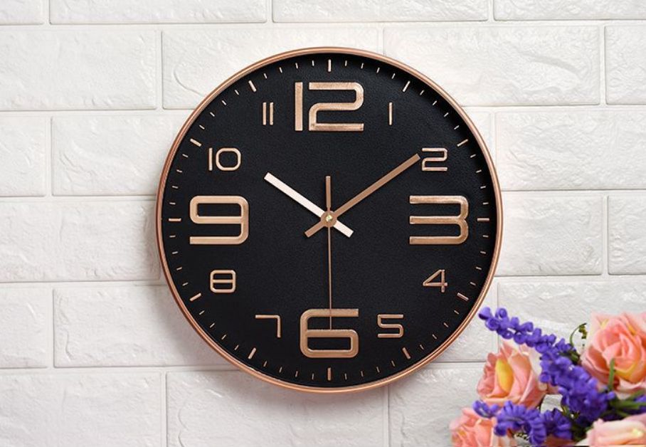 - 12 inch decorative Rose Gold clock. Elegant stylish design. Large modern bold 3D numbers against a crisp white face creates easy viewing from any angle. Precise quartz movements guarantee accurate time