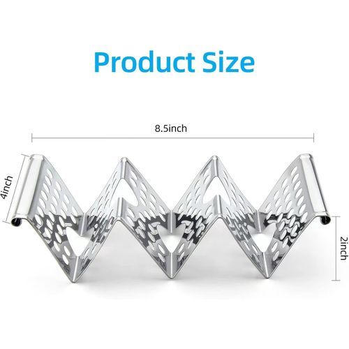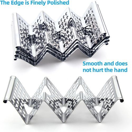 - High Quality Stainless Steel: The taco tray is made of stainless steel material, which is very strong and durable and will not bend or deform. They will keep the tortillas upright, whether they are sitting on a plate or baking in the oven.