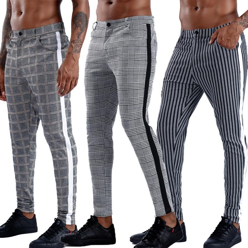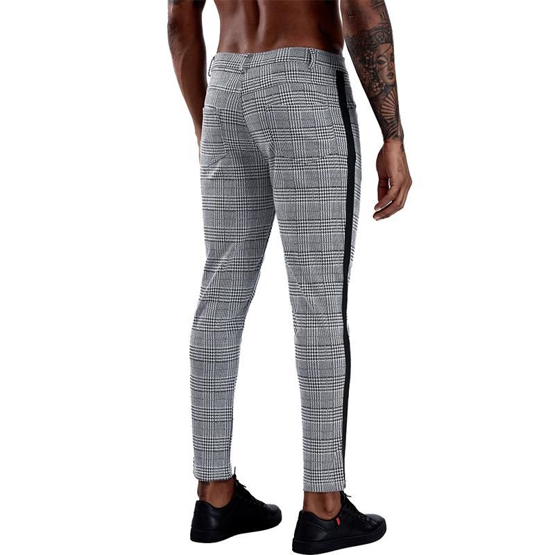 Pantalones elasticos a cuadros para hombre, Pantalon ajustado inferior, ropa de calle, de chandal, para correr, informal, 2020