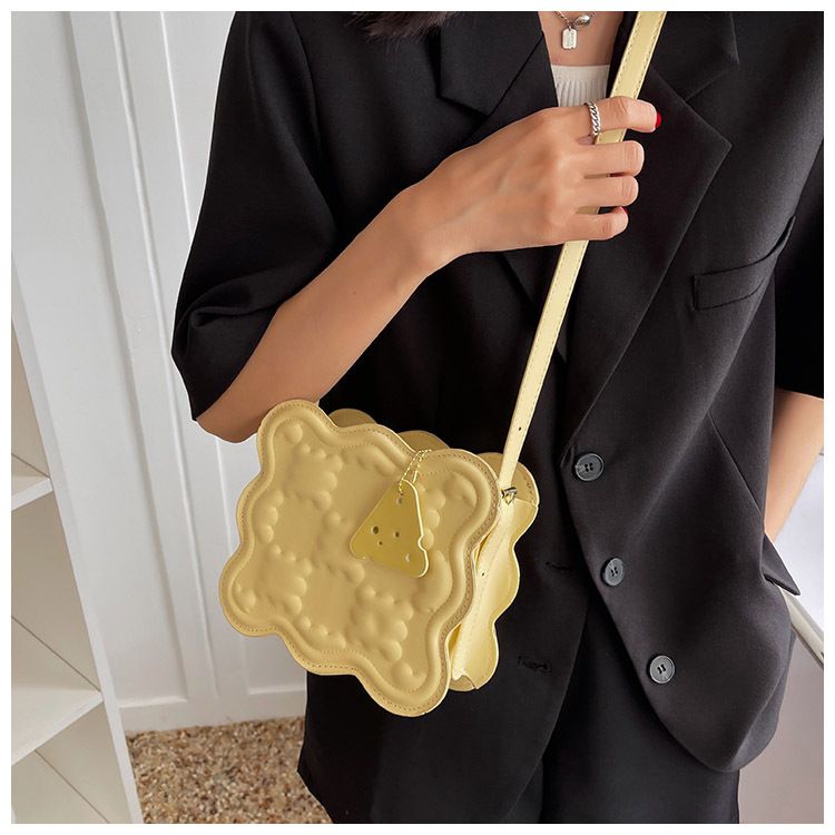Color: yellow, black, beigeStyle: fresh and sweetMaterial: PULuggage trend style: small square bagLuggage size: smallPopular elements: car sutureMarket Year Season: Spring 2022Lining texture: synthetic leatherBag shape: horizontal squareOpening method: zipperpattern: plainProcessing methods: soft surfaceHardness: MediumCarrying parts: soft handleOuter bag type: three-dimensional bagWith or without interlayer: noneStrap root number: singleApplicable scene: leisure, sports, travel, shoppingThis stylish women's cheese biscuit bag can be worn in front or behind you as a crossbody bag. It is a durable and stylish bag that will accentuate your style whenever you are in any occasion.