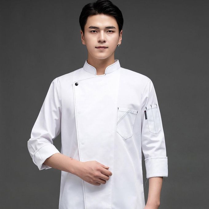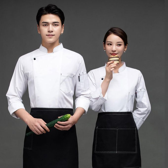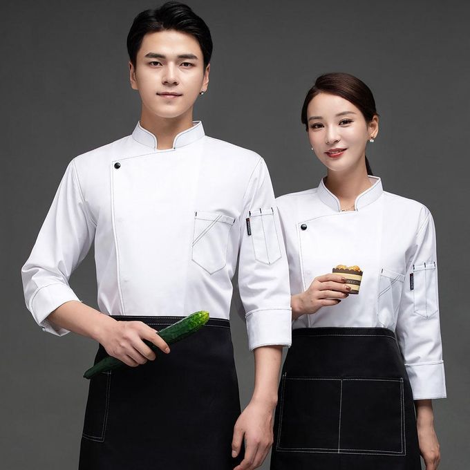 Long sleeve chef coat;chef coat costume men women adult long sleeve;white chef jacket apparel company funny bbq;chef uniform clothes clothing restaurant;server waiter waitress costume cake maker;food service clothing top