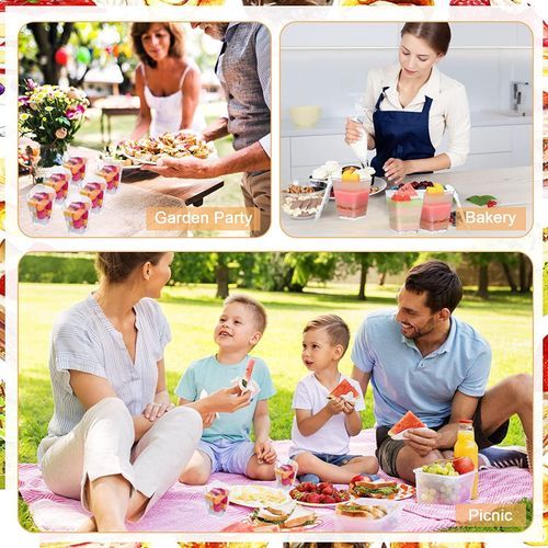 - Disposable and Reusable: you don't need to worry about throwing these clear parfait cups after a party, you can throw those parfait cups with lids away when the party is over or you can wash them for your use, and the cups can be stacked up for easy storage and space saving