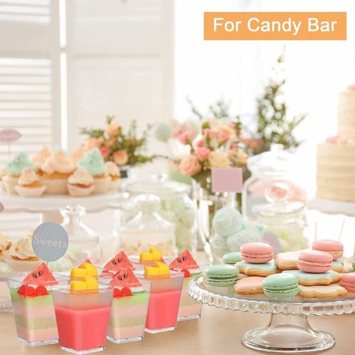 - Quality material: these elegantly designed mini dessert serving cups are made of quality plastic material, no BPA and no odor, which can be safely applied; This mini cup is the nice way to display your favorite trifle cups, mousses, appetizers cups, and chocolate dessert cups