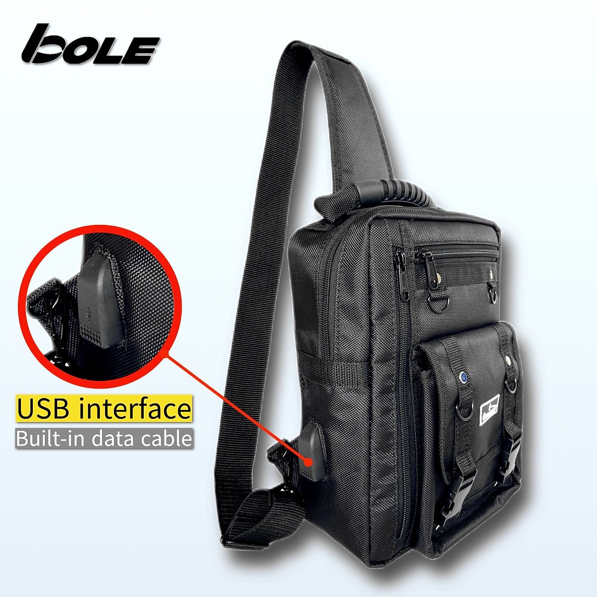 1X BOLE Chest Hang Tool Bag Single Shoulder Bag 1680D Oxford Cloth Backpack Multi-Functional Hard Man Style Preferred Satchel