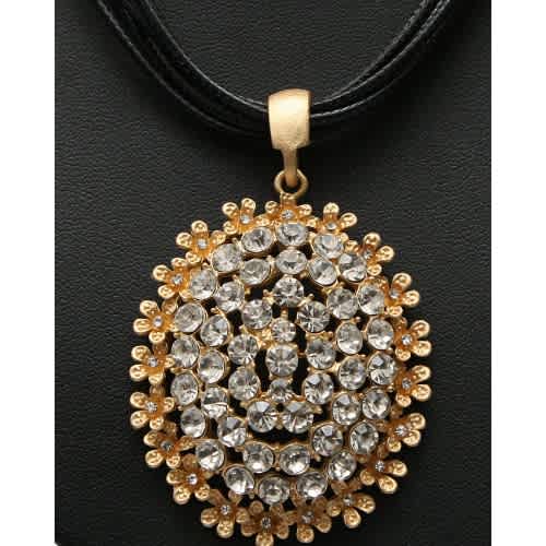 This beautiful choker comes with a multi strap neck tie. It features a double detail pendant and is suitable for day or night. Remember to coat the metal parts with nail varnish to avoid tarnish due to sweat or sunshine. Limited stock and very affordable.
