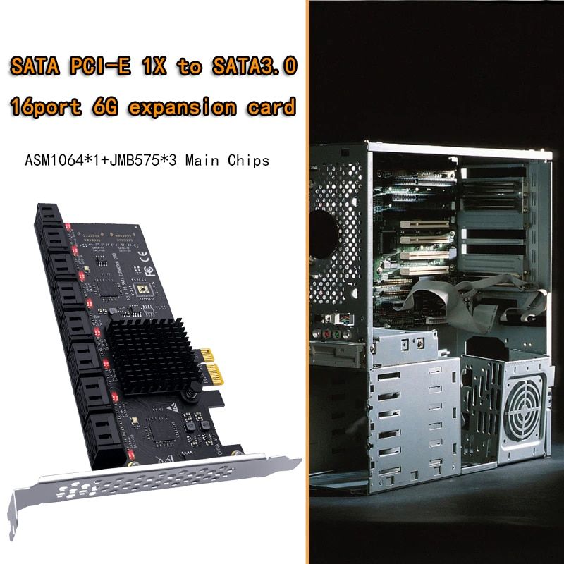 1X Chia Mining Riser 16 Port PCIE SATA Card PCI Express SATA Controller PCIE to SATA 3.0 Expansion Card PCI E X1 SATA3 6Gb w/ Cable