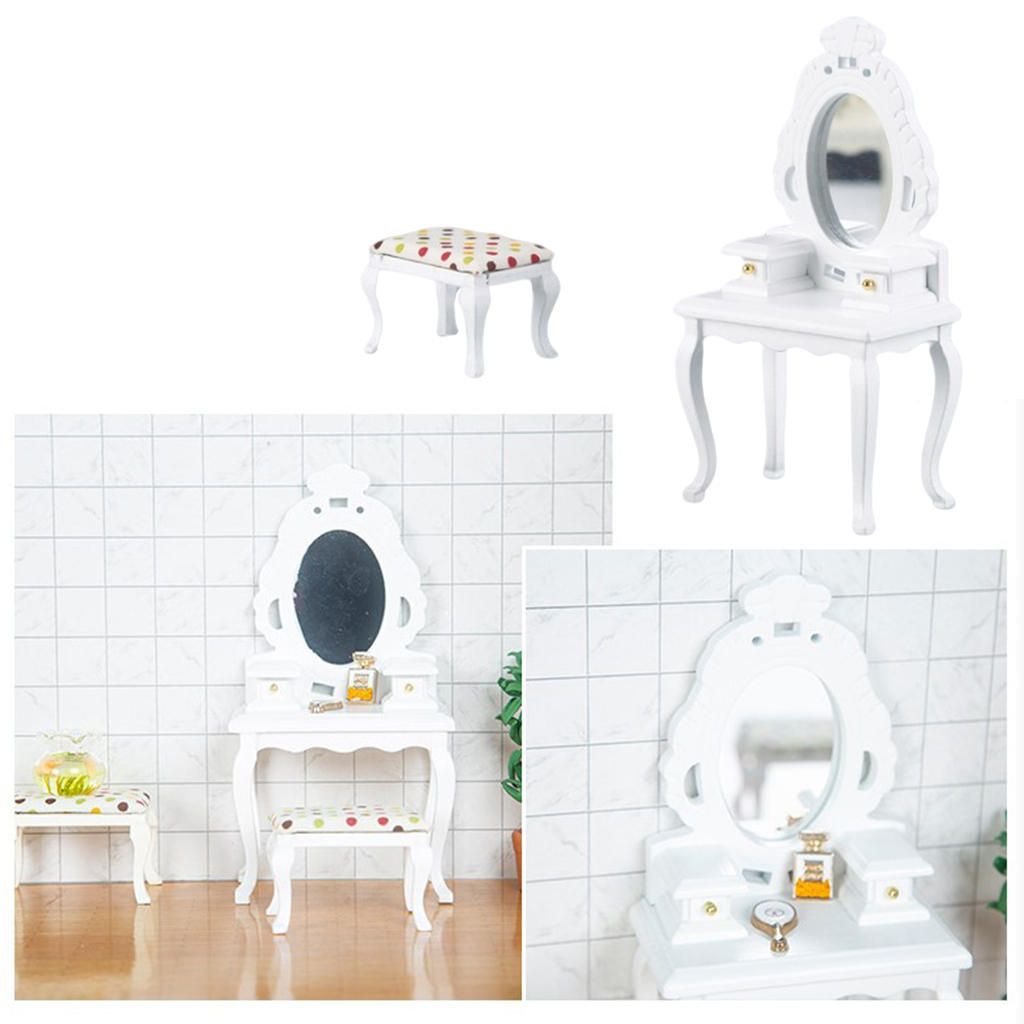 1/12 scale handmade vintage dressing table with stool, perfect for interior decor.