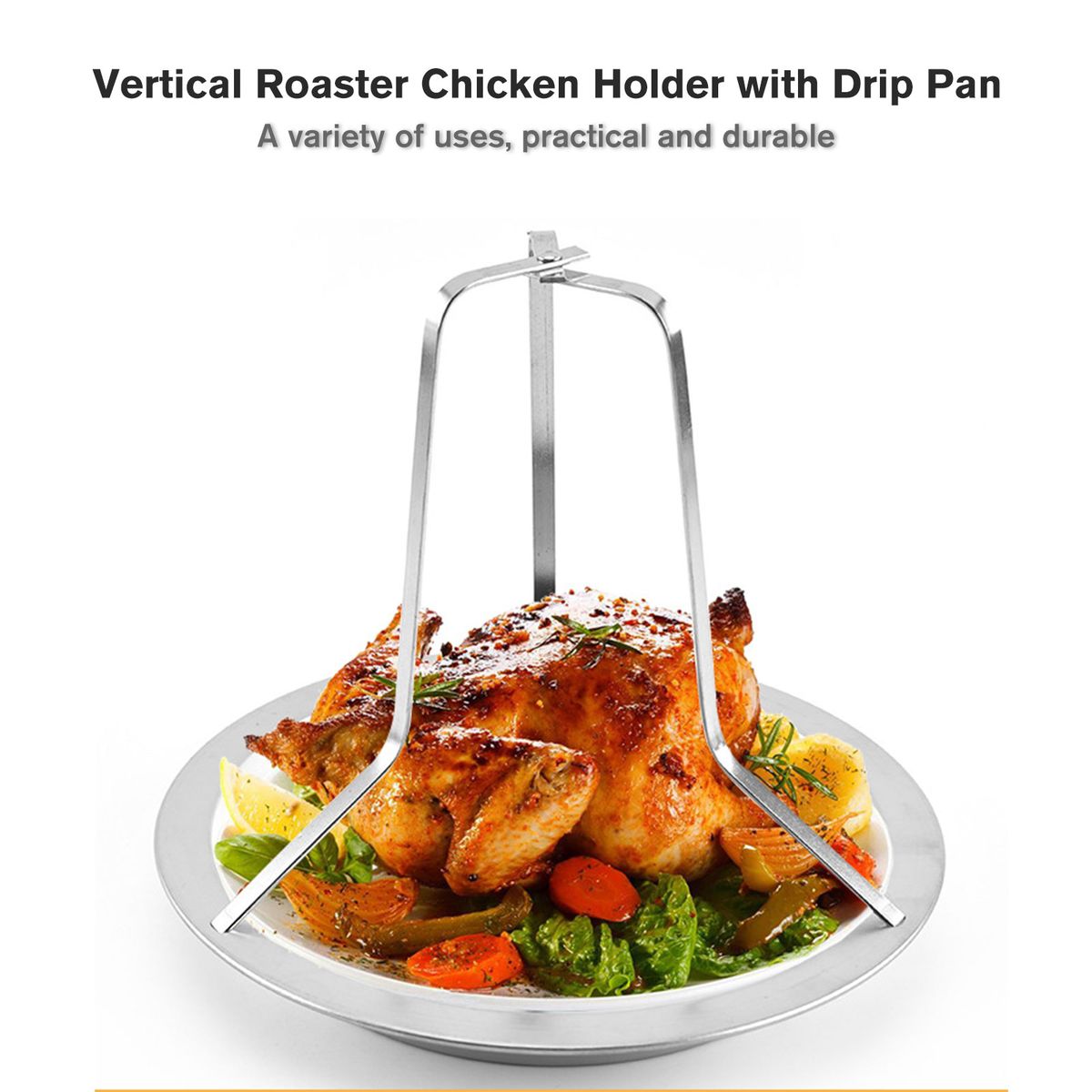 Detachable amp; Easy to Clean: Come apart design, the drip pan and bracket can be separated, convenient to store and carry. The chicken roaster rack is very easy cleanup, hand wash or dishwasher are available.