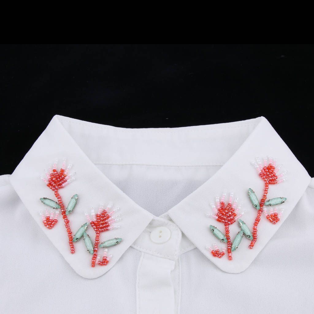 Ladies girls vintage embroidery beads crystals floral chiffon fabric false collar bib