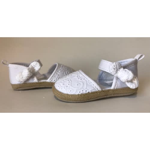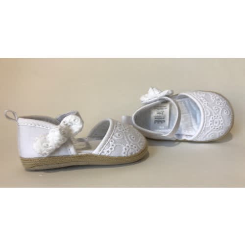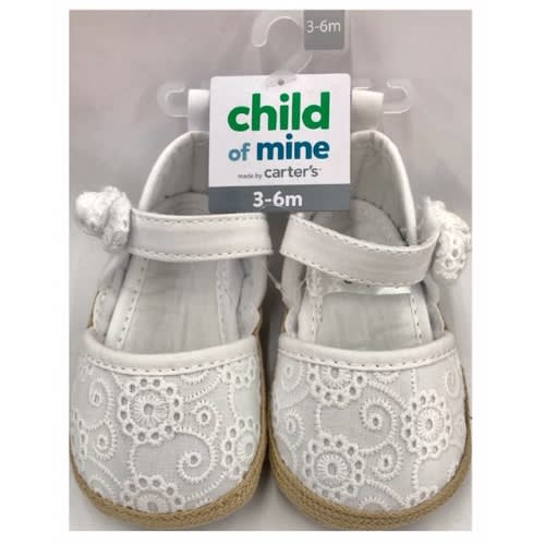Complete your baby girl's outfit with the Child of Mine by Carter's Newborn Baby Girl Epsadrille Sandals. These shoes feature an easy slip on design with a fast closure that parents love! The Lace finish is the perfect match to a variety of outfits. The adorable white bow detail is the cherry on the top!