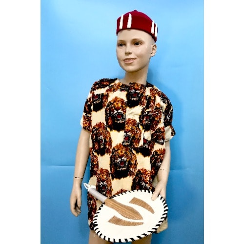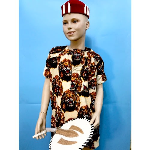 Buy Children Boys Igbo Ibo Cultural Wear Set - Cap - Fan And Velvet Isiagwu- Cream in Nigeria