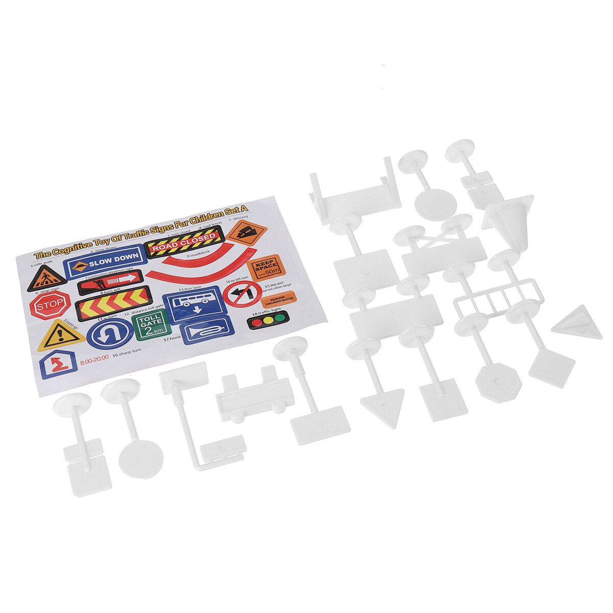 (Can choose to buy according to your needs.) 1 x Map 10 x Trees 6 x insects 12 x Marine Animals 12 x Wild Animals 12 x Dinosaurs 28 x Traffic Road Sign A 28 x Traffic Road Sign B 1 set Dinosaur World(109 pcs)