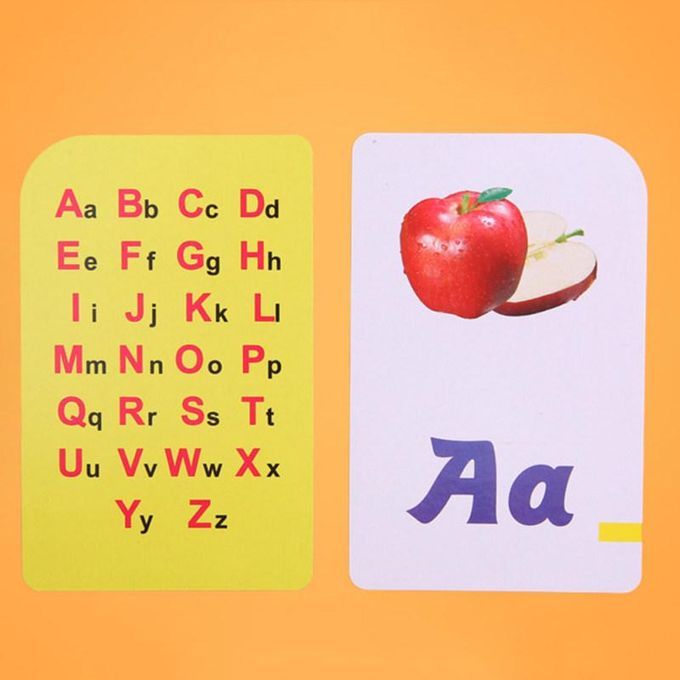 It contains about 50 cards. On the card face, there is the Arabic numbers/ English alphabet.