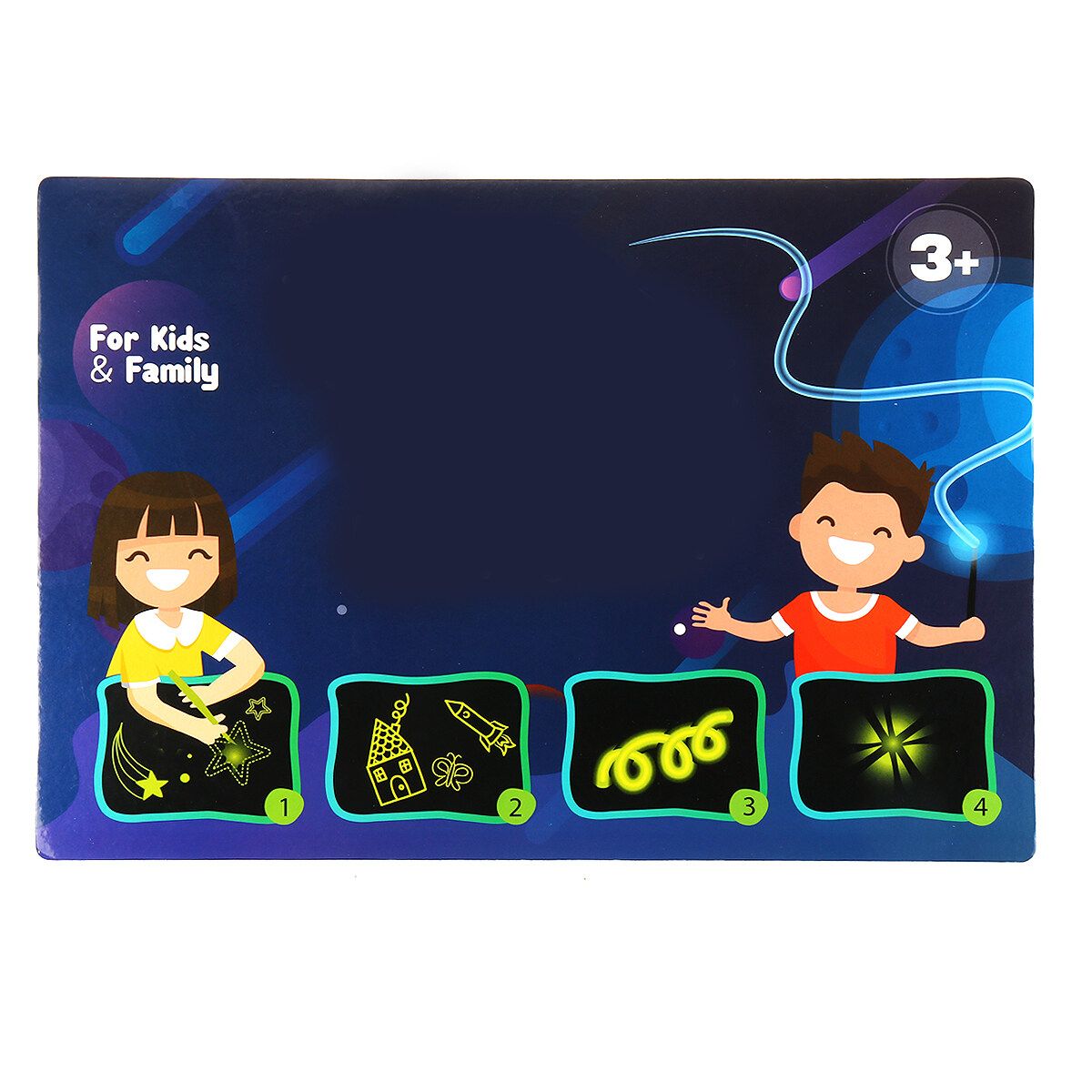 -Easy To Carry: Take a special tablet with a light-accumulating coating, a flashlight marker and start drawing!