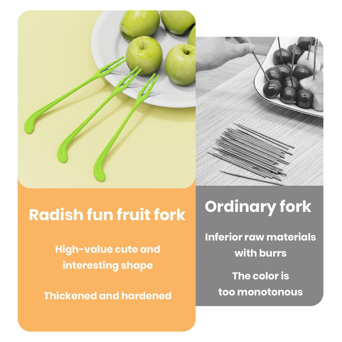 Versatility is another great feature of our radish fruit fork set. it's not just for home use these forks are perfect for bars, parties, banquets, weddings, restaurants, canteens, and more. they are also great for serving appetizers or desserts at any occasion.