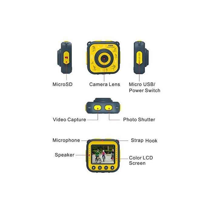 What In the Box1x Kids Action Camera 1x USB Cable 1x Clip 1x Maunal 1x Mounts