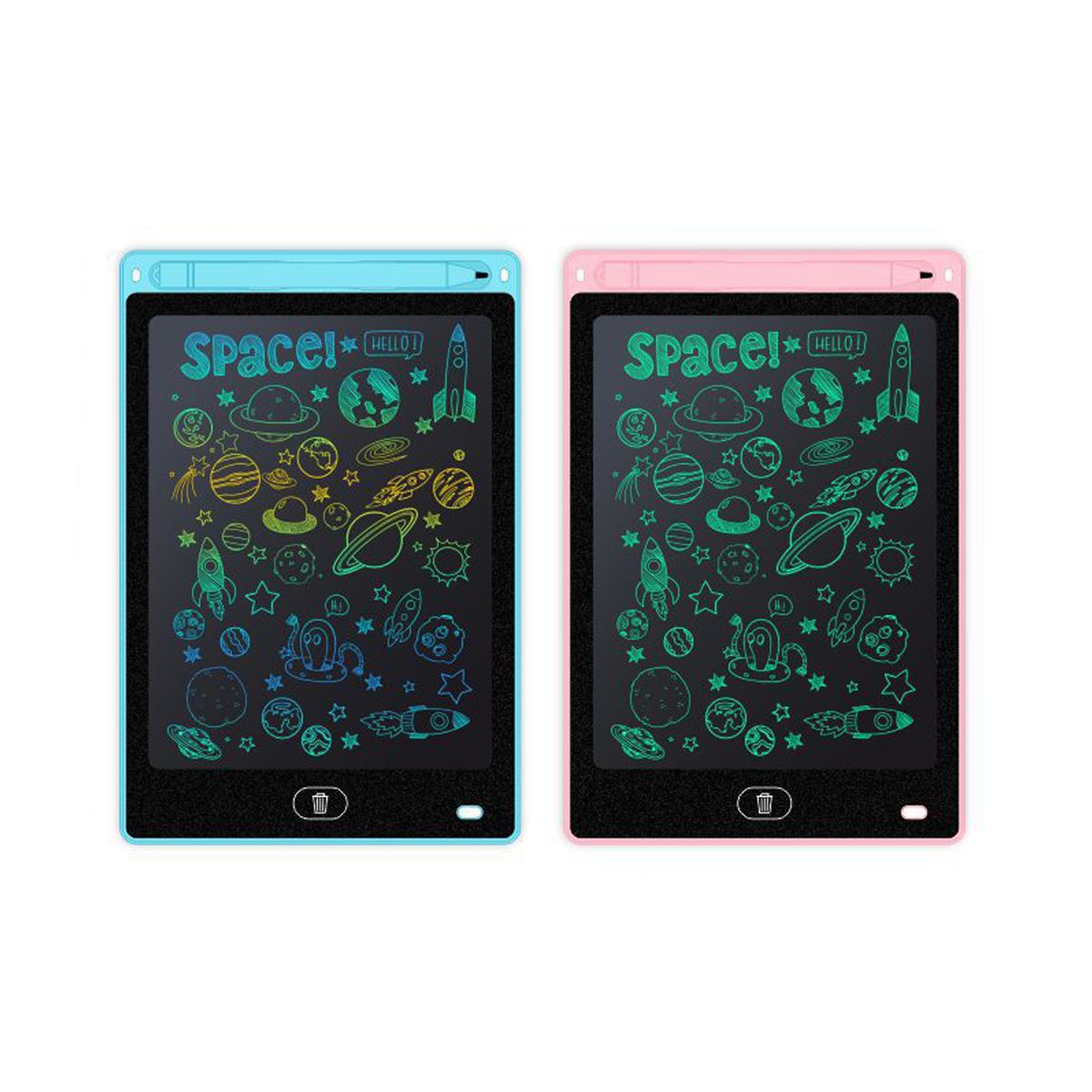 Perfect Gifts for kids and adults: The drawing tablet is suitable for children and adults. Kids can use this drawing board to stimulate their creativity and keep busy, like scribbling, counting or practicing words. Adults can update shopping list, take notes or leave meages on it. Writing tablet is definitely an integral part of your gift list. -Design friendly and eco-friendly: You can hit the erase on to clear, pre the lock on to save, no charge or connection required ( batteries included). A drawing board is like an endle sheet of paper! Magnetic board can be scribbled over and over again, saving at least 10,000 pieces of paper a year. -Colorful Screen: The colorful drawing pad uses the LCD preure-sensitive technology, No more worry about wasting paper and killing trees; LCD screen, no radiation, no glare, all protect your eyes be more safe and comfortable when you create work for a long time. -Durable and portable: Writing pad's case and LCD screen are made from durable materials, anti-shock and anti-fall. Writing board is totally lightweight to put in backpack when go to school or go to work.