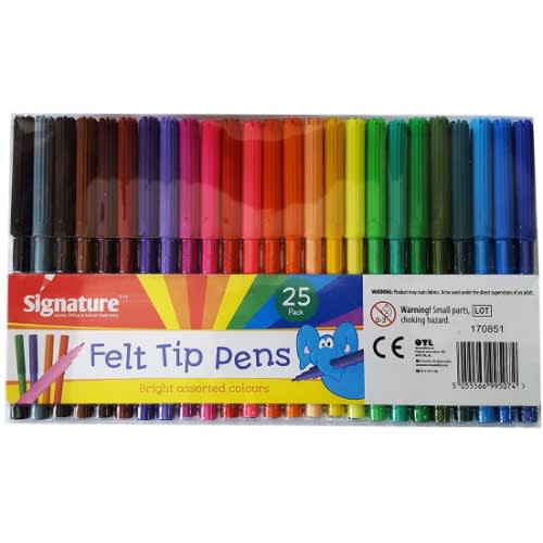 Fine tip on each felt pen to ensure accurate colouring and to help create that colourful picture masterpiece. Comes in a clear clamshell pack with handle for easy storage and access.