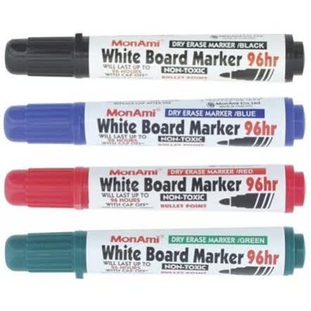 Mon Ami liquid white board marker is a Low odor alcohol-based dry erase marker. Wipes off easily with dry cloth or paper towel.