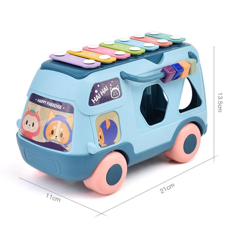 Children Multifunctional Bus Toy with Light Music Early Education Puzzle Toy(Blue)