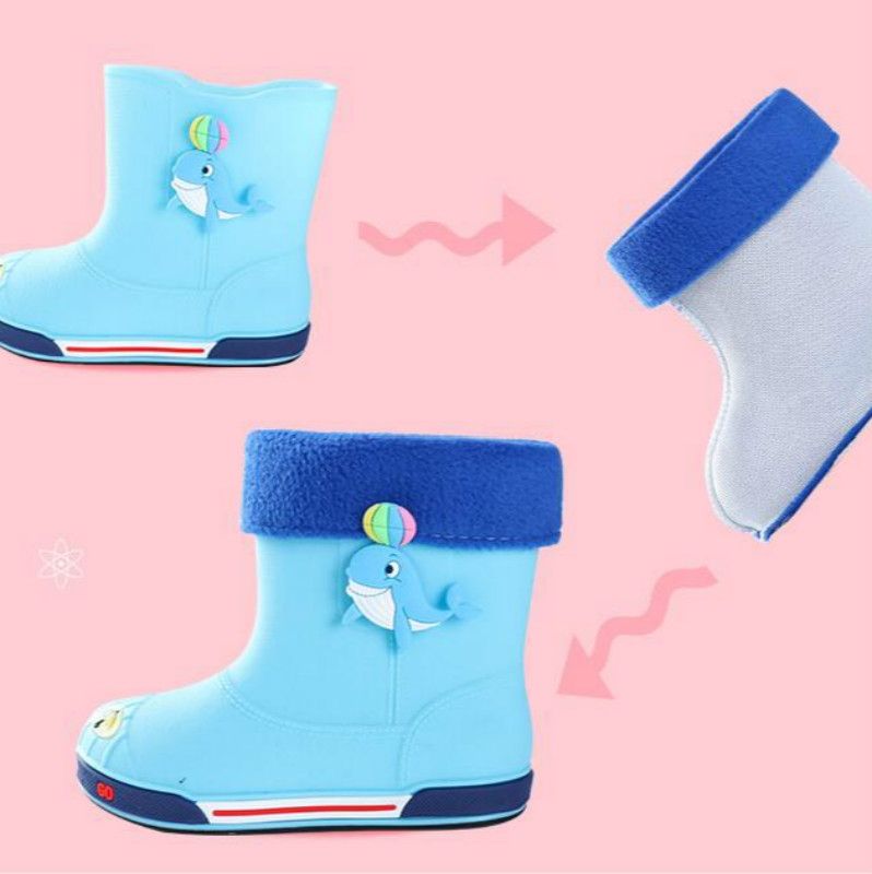 Children Non-Slip Plus Velvet Warm Cartoon Short Rain Boots, Size:Inner Length 18cm, Style:With Cotton Cover(Pink)