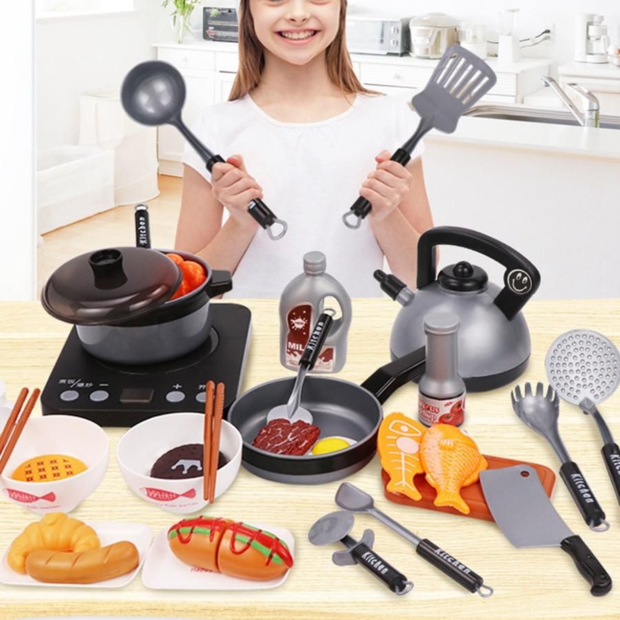 Let the kids experience the fun of kitchen through playing games with this set of cook ware