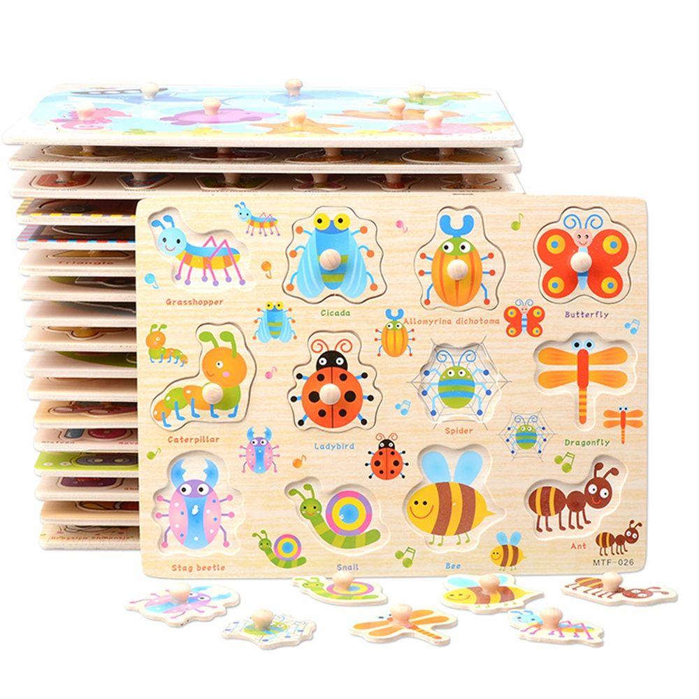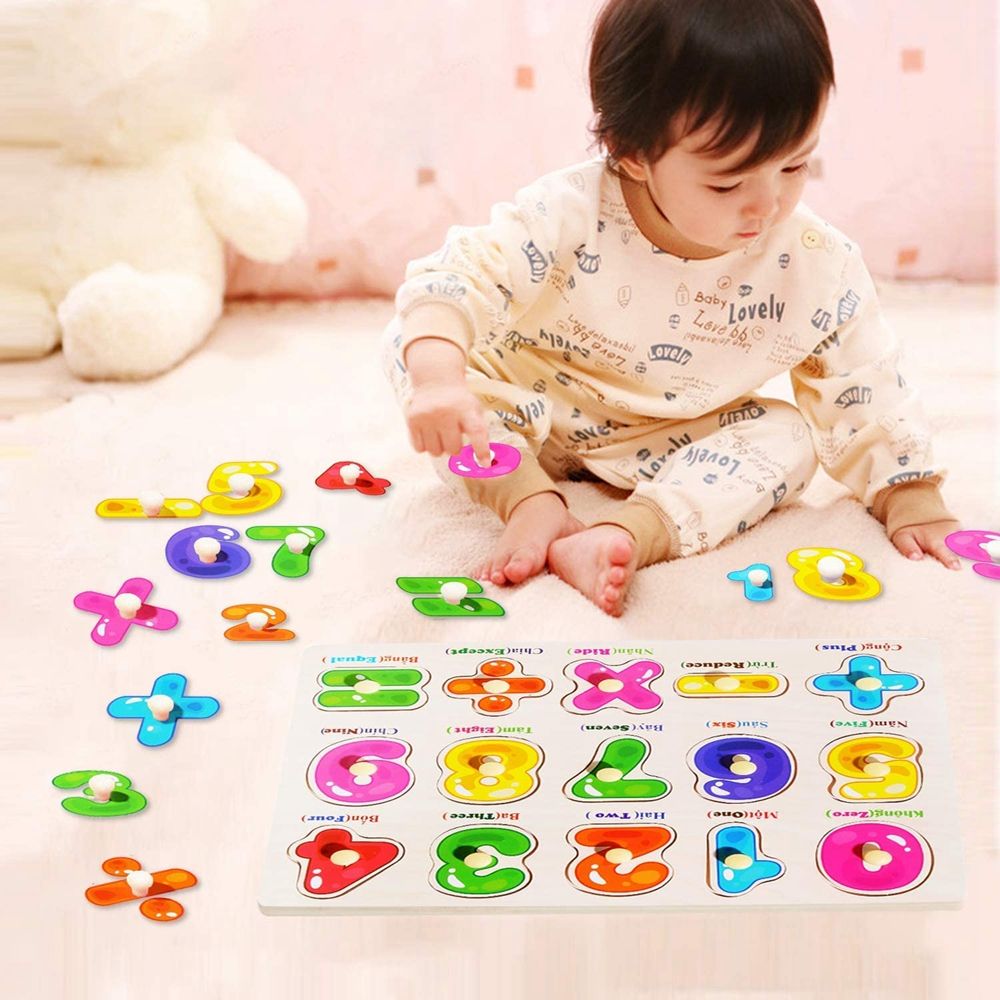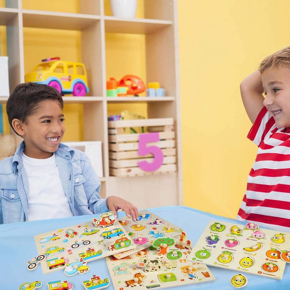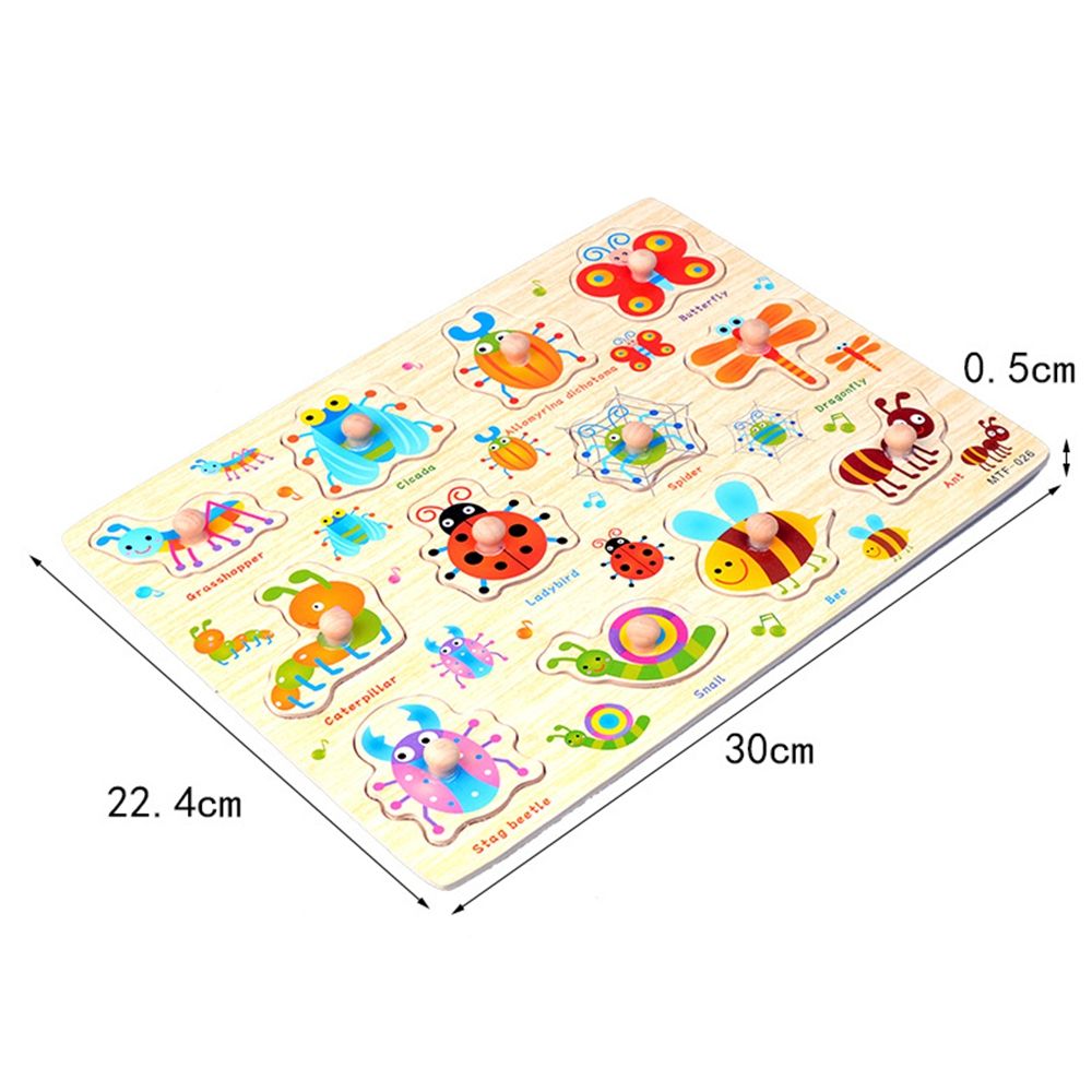 Wooden Peg Puzzles for Toddlers 2 3 Years Old, Alphabet Number Puzzles for Kids,Letters, Numbers, Animals and Vehicles, Learning Toys Gift for Girls and BoysGREAT DESIGN FOR TODDLER:The puzzles with sturdy pegs are designed for young children to easily grasp. Pictures under pieces help with matching.HELPS DEVELOP MULTIPLE SKILLS:This wooden puzzle set assists children in developing important skills such as hand-eye coordination, fine motor skill, basic cognitive skill while building the foundation for a lifetime love of learning.SUPERIOR MATERIALS FOR BABY:100% natural wood non-toxic water-based paint. Our toddlers puzzles are designed for optimal safety.CREATIVE EDUCATIONAL GIFT:Give boys and girls this high-quality preschool puzzle as a gift for the holiday or birthday. You'll be doing your part helping children tap into their inner creativity!Product DescriptionProduct Name: Wooden Peg PuzzlesMaterial: woodSize: 30 * 22.4 * 0.5 cmFit for: 1-5 years old childrenPack Include:1x Wooden Peg Puzzle