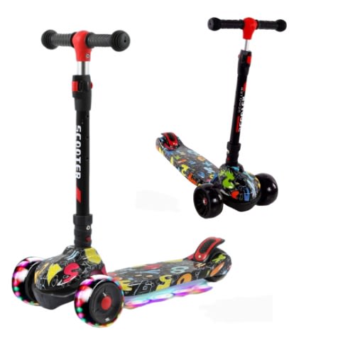 Children's 3 wheels foot kick scooter made of PU,nylon material and aluminum alloy,one button folding, easy to install, safe load-bearing 100KG, the scooter can exercise your child's leg flexibility and body balance