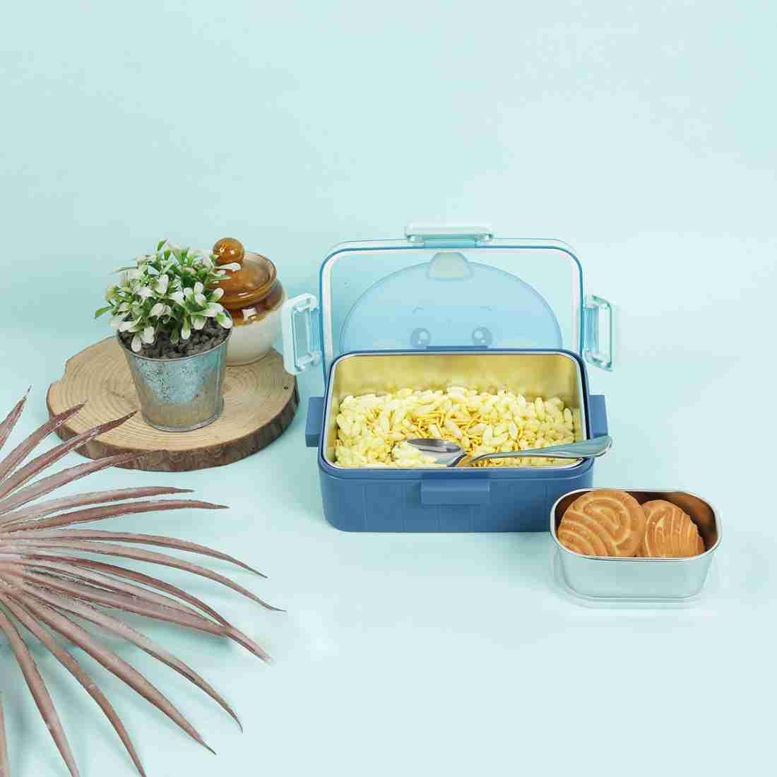 Keep food separated for adults and kids with 2 compartments, plus a cutlery section with a spoon and fork Children's Lunch Box Set Sealed
