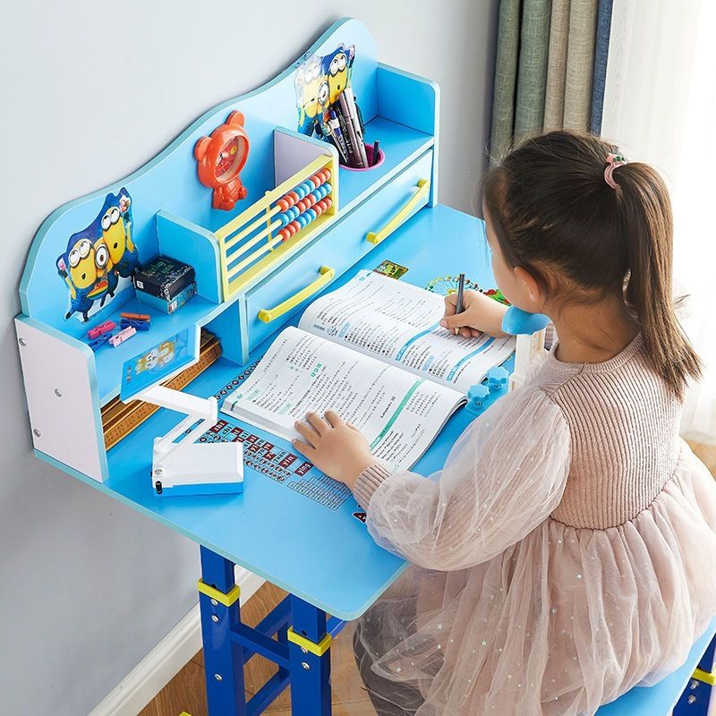 The kit desk and chair is adjustable, it make the child to relax and comfortable while studying, it have a household shelfIt portable and ease the child possition while studying