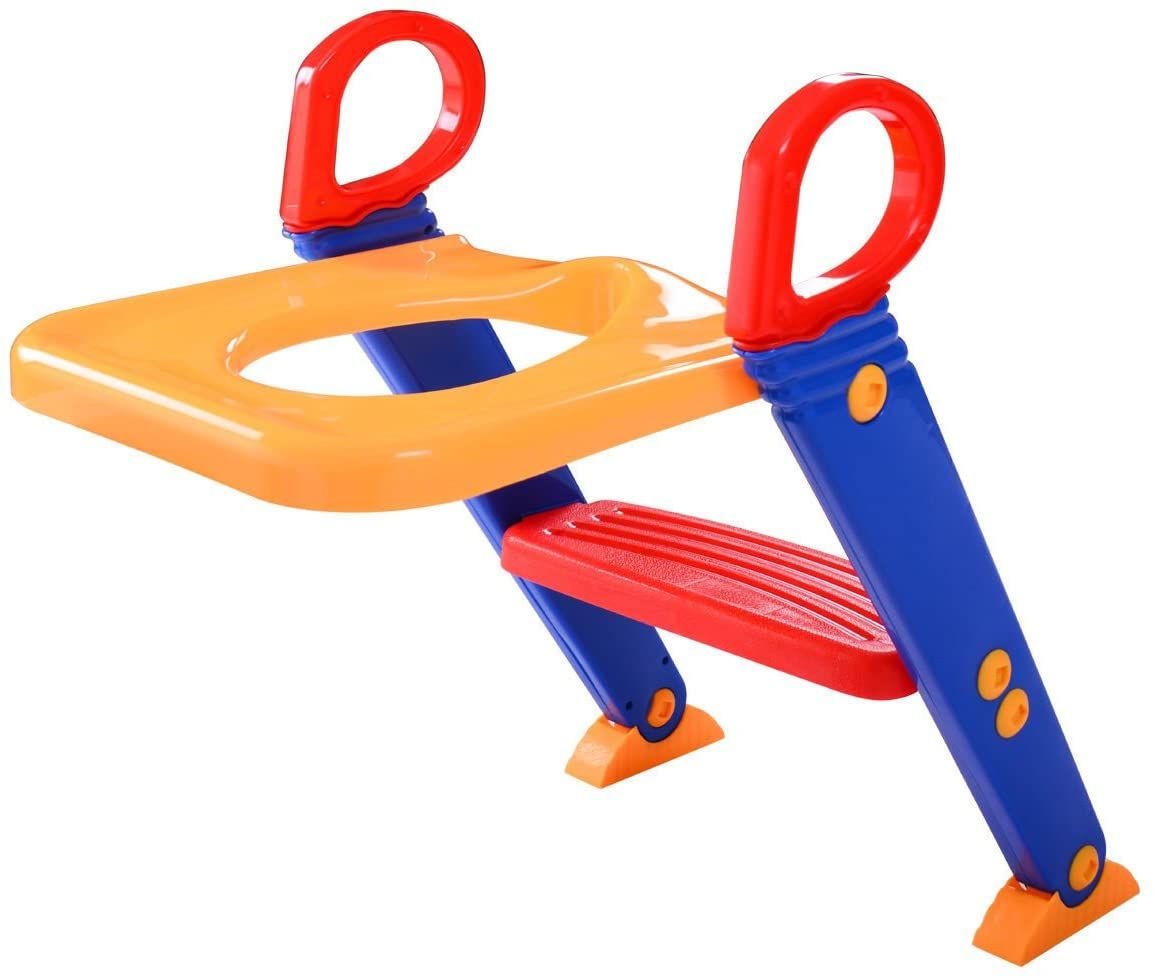 There is no messy potty to clean since it works on an adult toilet. Its unique space saving design allows it to fold up for storage when not in use.