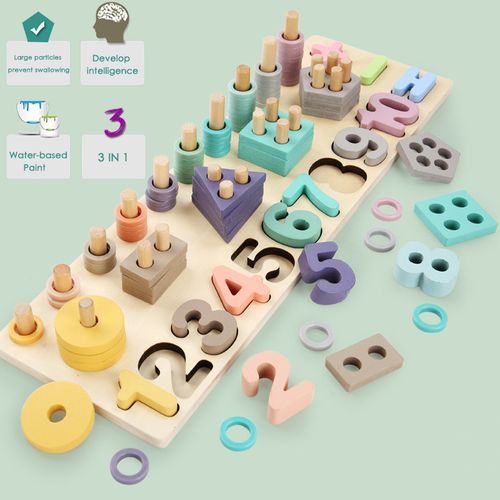 Kids Wooden Geometric Board Blocks Puzzles Number-Shape Matching Educational Toy