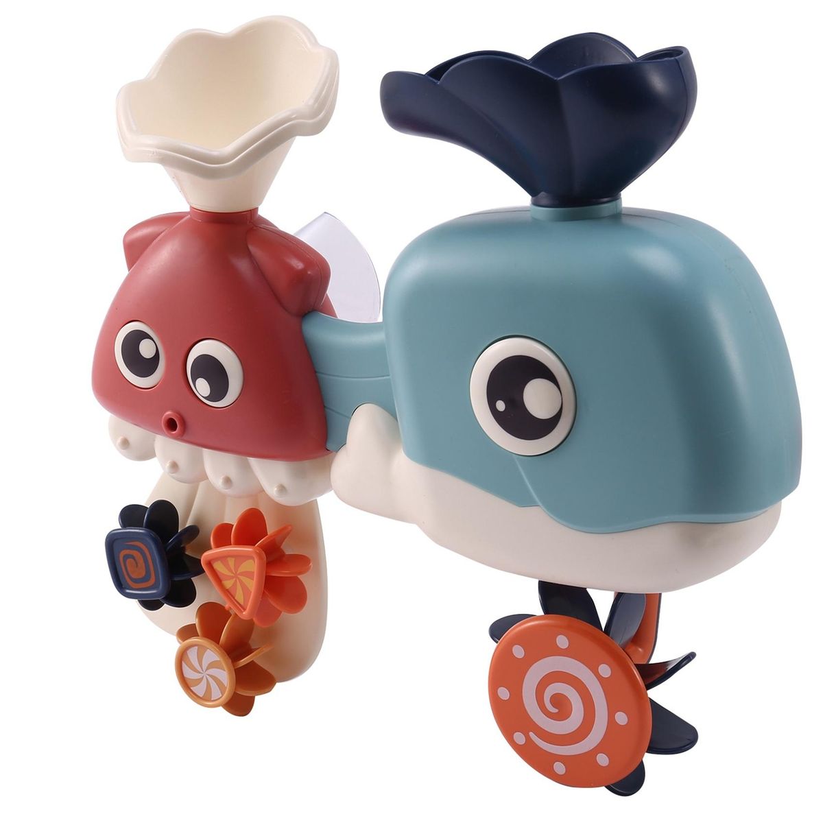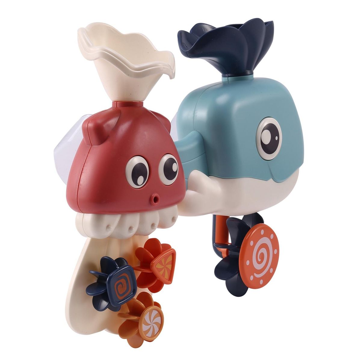 The colorful shower cups are used in conjunction with the spout to create different water effects for painting, tensioning and floating fun.