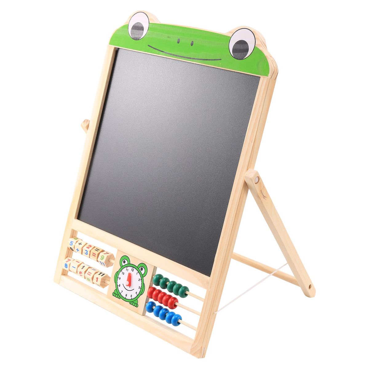 The magnetic whiteboard on the front and the blackboard on the back serve two purposes.
