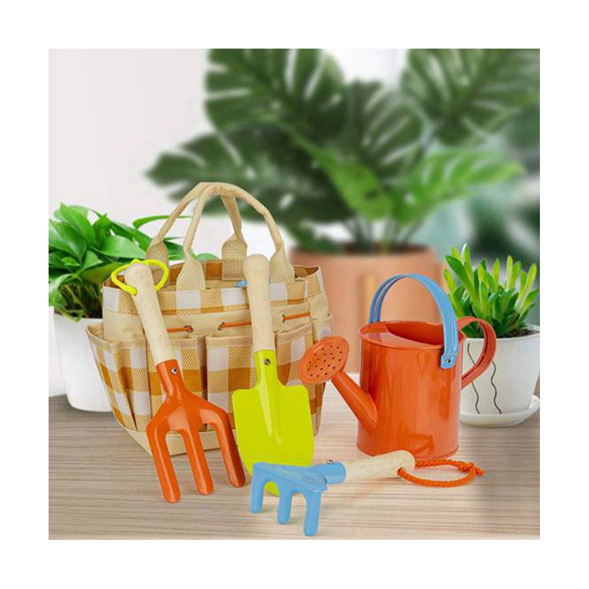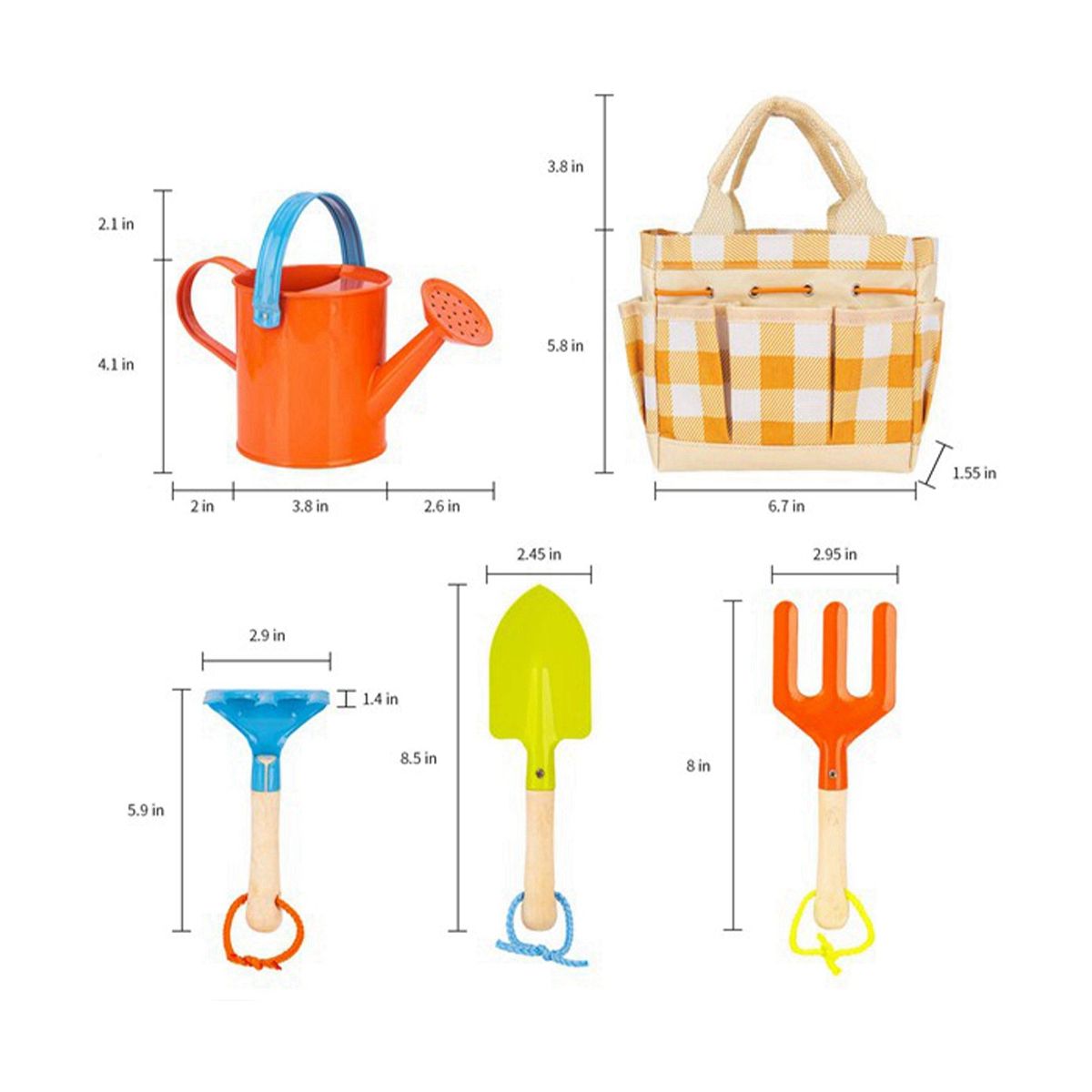 Gardening Tool Set : This Kids Garden Tools Set is great for gardening and planting. Including trowel, shovel, rake, watering can, Glove and carrier tote bag. Perfect size hands.