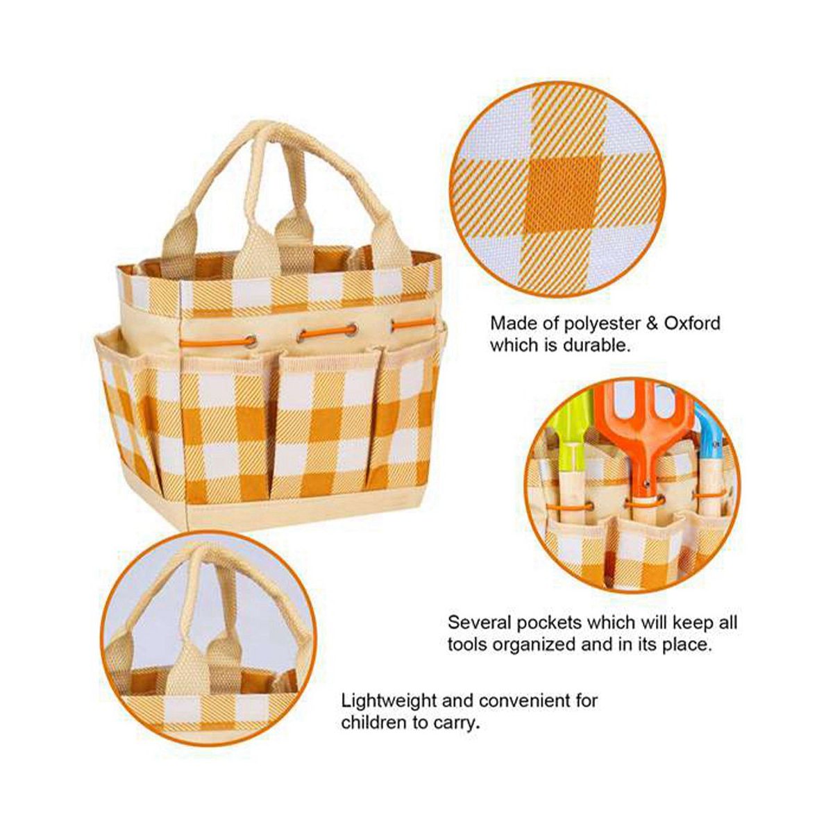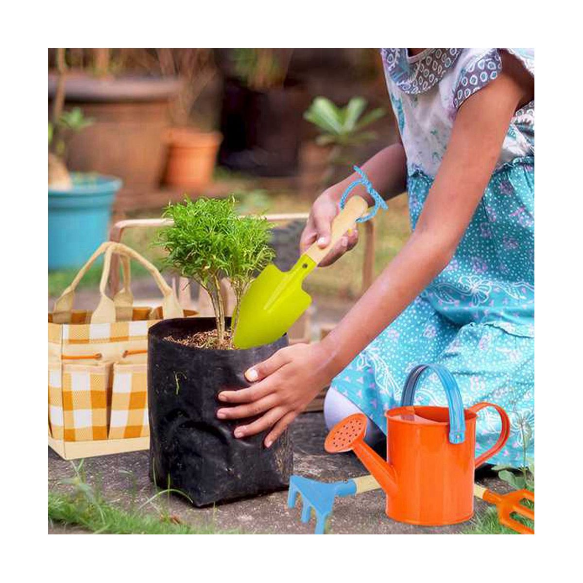 Garden Toe Bag: This bag has multiple pockets for toys and tools. The tote bag is and convenient for children to carry with themselves while gardening. Gardening Set .