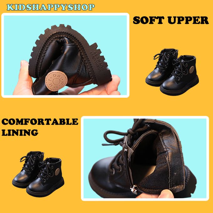 Buy Children's High-top Solid Color Martin Short Boots-black in Nigeria