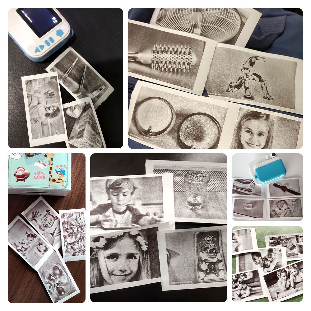 Q: Does this camera need ink ? How does it work ? A: Don't need ink. The working principle of the camera is that the print head heats the thermal paper to get the print content. Q: The camera print colorful photos or black and ? A: The camera print black and photos, so we send a set of color pens to you as gift. Kid can DIY the photos ar them take. It is really funny. Q: Is the camera hot when use it? A: NO. This print camera is safe for kids use, it is like nomal camera, won't be hot. Q: Can I choose the picture from the alto print ? A: Yes, please make sure the SD card is inserted into the camera. Step: Choose the al- OK - Print - OK Q: How many picture do you get from one roll of paper ? A: About 130 sheets picture. Q: If the printed photos are not clear, how to do? A: Adjust the print density, then it can print clear photos. Step: Setting - Print Density - 0-2 Q: Can I start up the camera when it charging ? A: No, ar fully charged, the charging indicator is off, then unplug the USB cable and start up the camera.