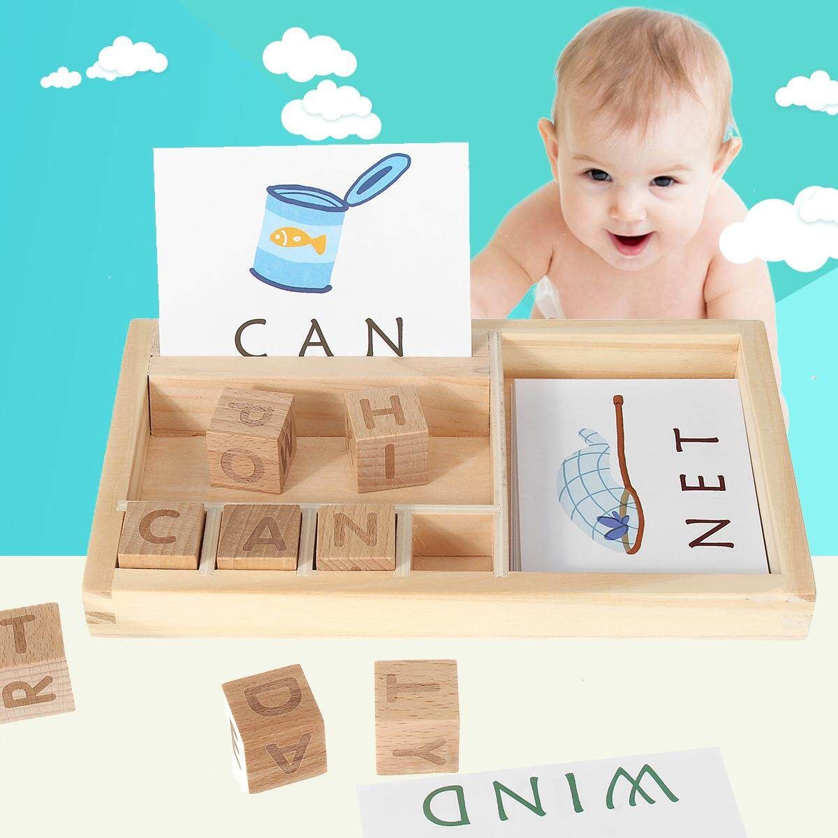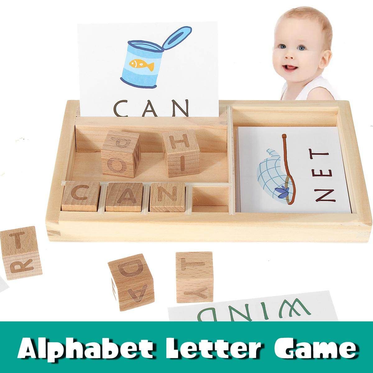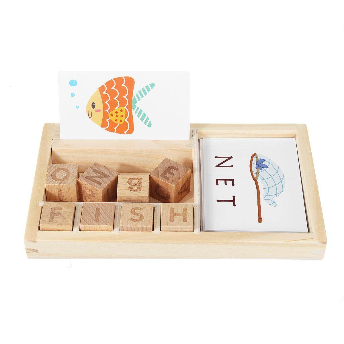 Children's intellectual development toy Wooden Spell Alphabet Developmental Letters Blocks with Cards Board Develops Vocabulary