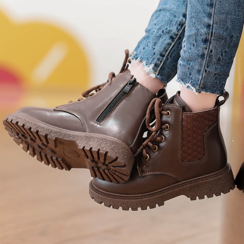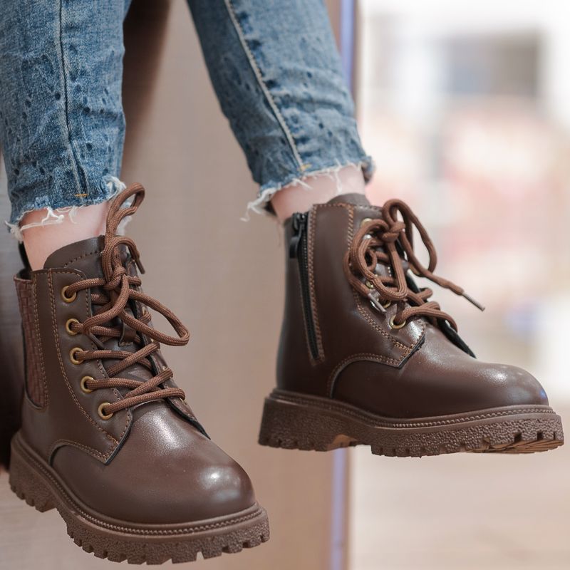 Buy Children's Outdoor Non-slip Leather Martin Boots Hiking Boots-Brown in Nigeria