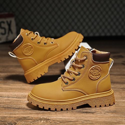 Buy Children's Outdoor Non-slip Leather Martin Boots Hiking Boots-Yellow in Nigeria