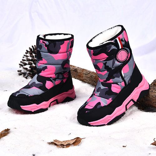 Buy Children's Outdoor Snow Boots Plush Lining Warm Non-slip Boots-Black Red in Nigeria