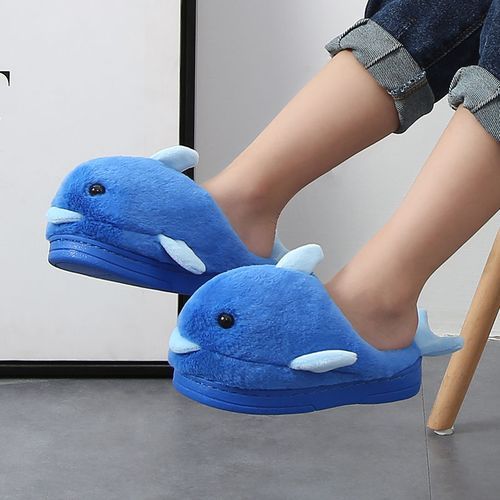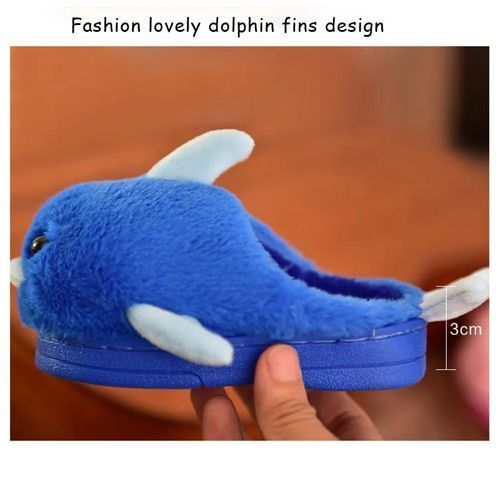 1X Children's winter blue dolphin furry slippers