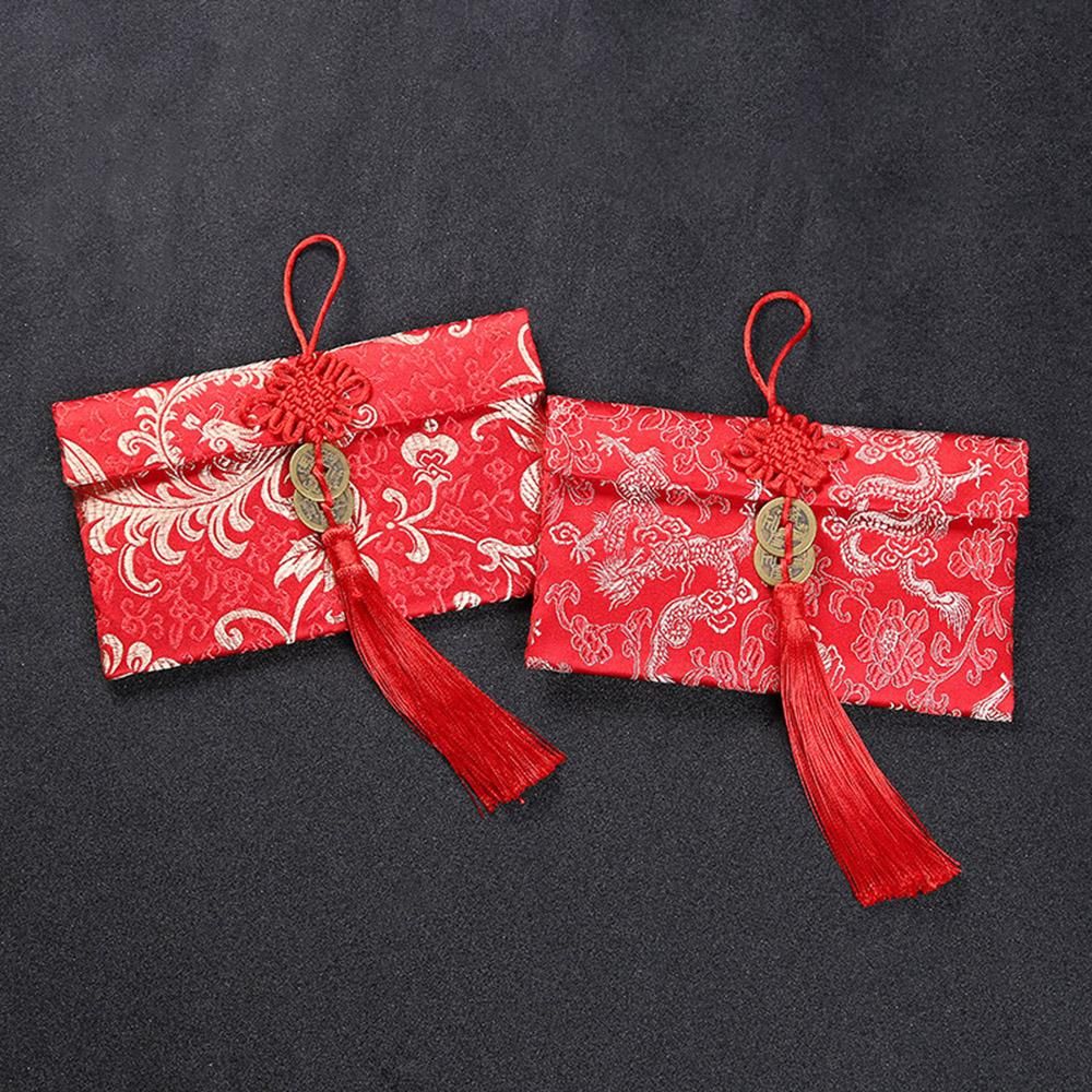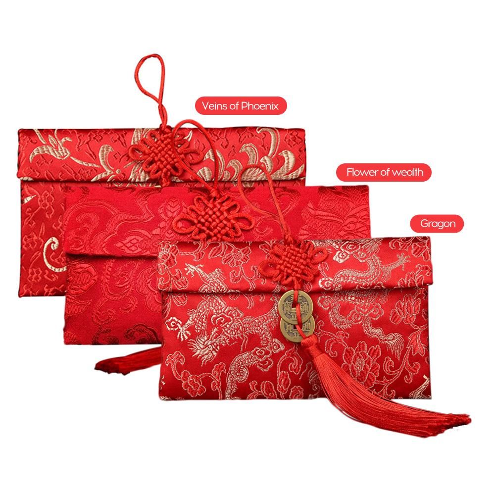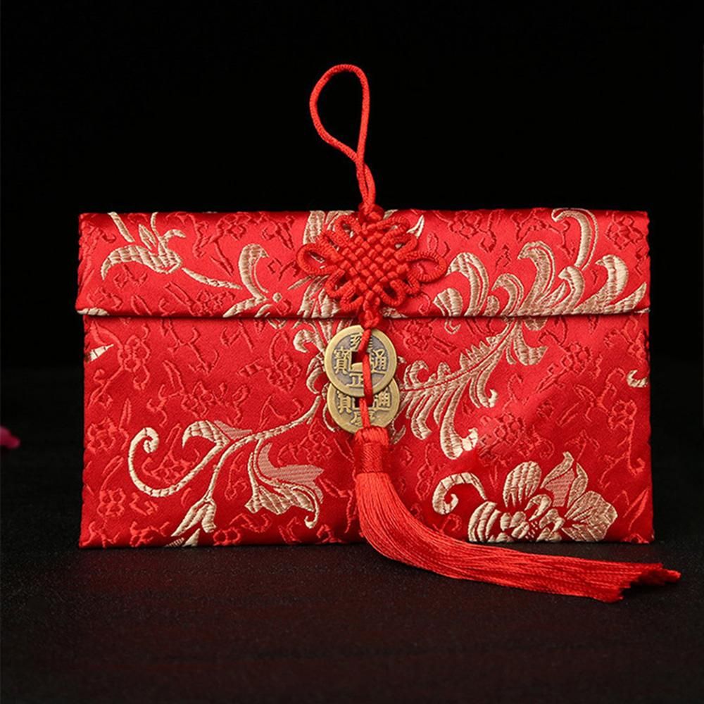 Buy Chinese knot horizontal version double copper coins brocade satin fabric red envelopes tens of millions yuan wedding bags wedding gifts Double bronze coin horizontal pattern in Nigeria