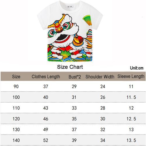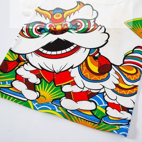 Type: Chinese Style Waking Lion Lucky Printing Short-sleeved T-shirt;