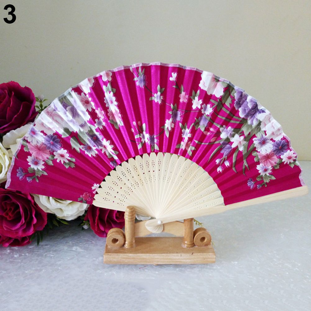 Buy Chinese Wedding Hand Antique Bamboo Fans Floral Folding Fan Festival Classical Dance Party Flowers Decor in Nigeria